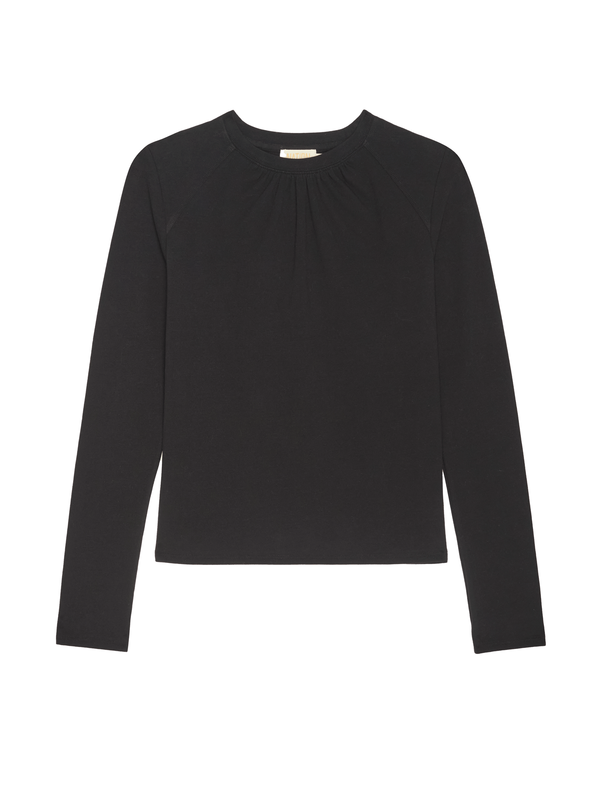 A simple raglan long sleeve meets subtly chic details with shirring at the crew neckline and a front yoke. We call it casual sophistication. (This one comes in Jet Black.)